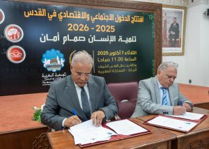 وبمناسبة افتتاح الموسم الاجتماعي والاقتصادي في القدس 2025-2026، تم التوقيع على اتفاقية لتمويل عدد من المشاريع بين الجمعية المغربية لدعم الإعمار في فلسطين ووكالة بيت مال القدس الشريف بتكلفة إجمالية تبلغ ستة ملايين درهم.